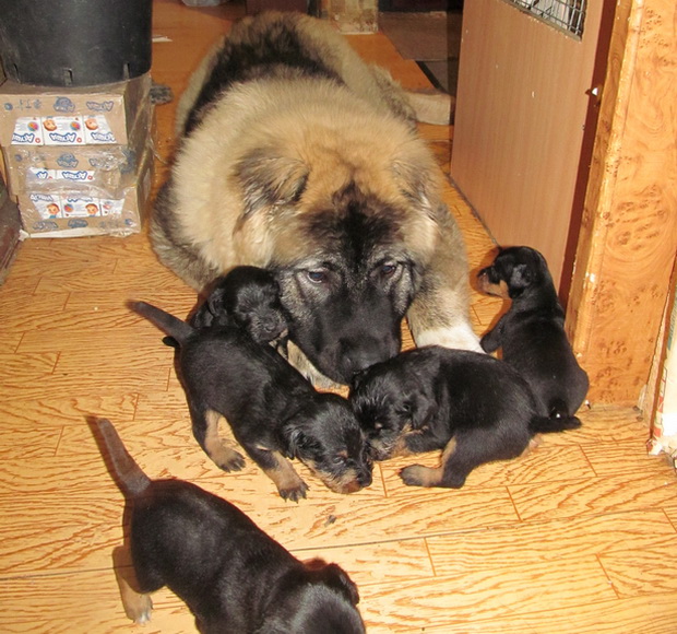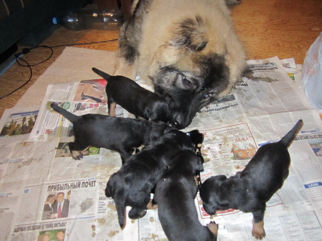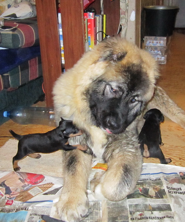 Да , необычный нянь :-o zdgxfg . Галина , как растут они быстро - вот только недавно этот маленький кавказёнок сам нуждался в няньке , а здесь уже сам сусам :) .