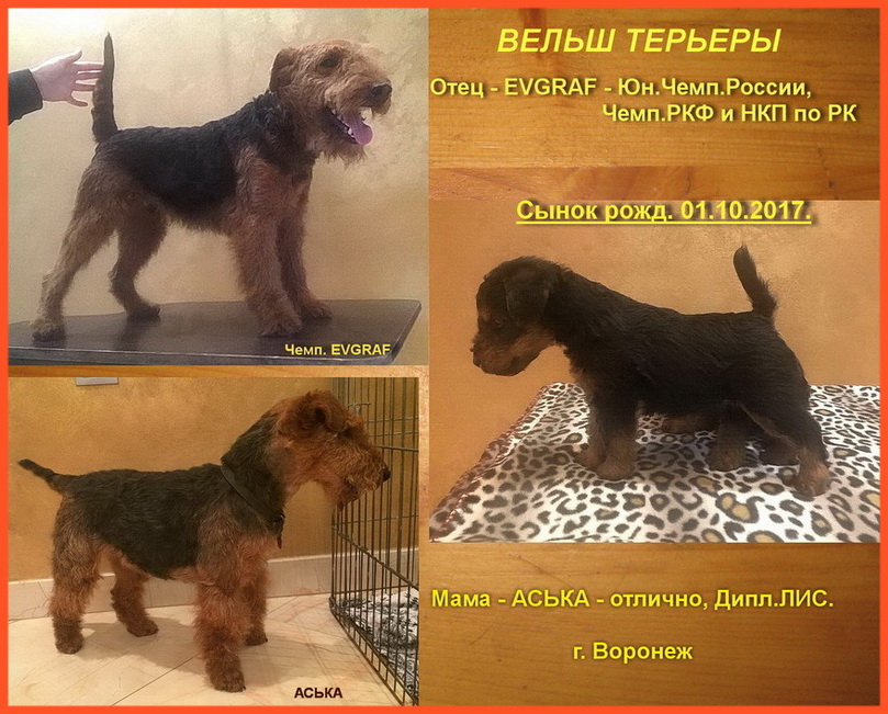 Вельш терьеры щенки, 3 кобелька, рождения 01.10.17, младшие братья Дизеля и Джаконды -