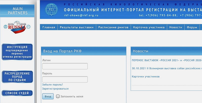 Регистрация строго через официальный интернет-портал РКФ -