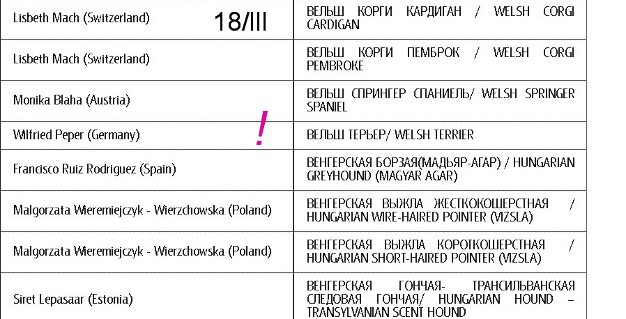 • Заявочный лист для участия иностранных собак в интернациональной выставке "Евразия - Кубок Президента РКФ" 19.03.2017