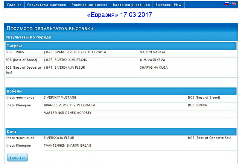 С сайта рКФ - Результаты по породе «Евразия» 17.03.2017: