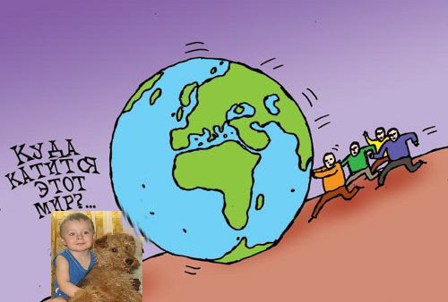 И он, невзирая на протесты своих родителей, встал рядом с девочкой и стал толкать мир.
