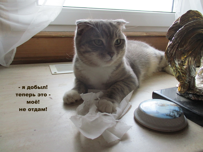 Похоже что Вислоухий котёнок наслушался новостей и сделал себе запас ...