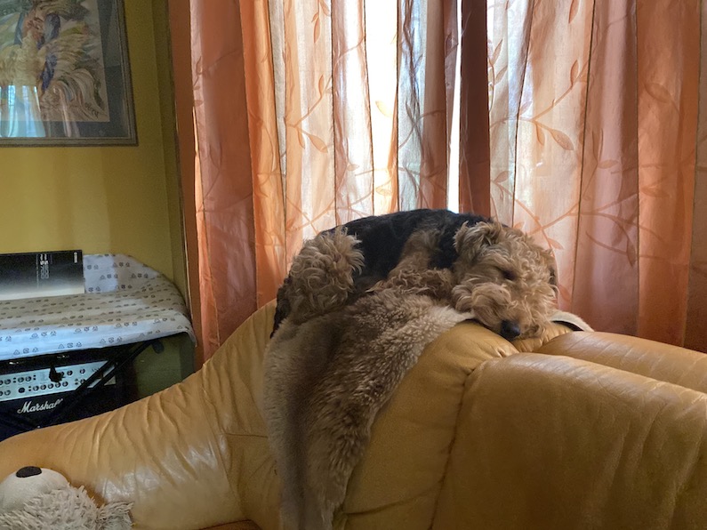 в выходные на даче - играет и отдыхает.