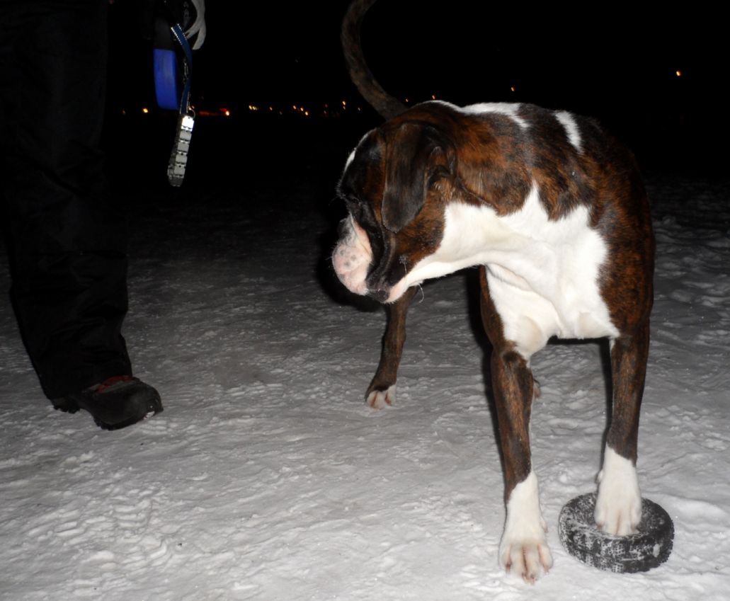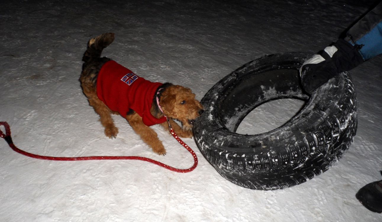 И самое главное , когда мы решили сделать равновесовой обмен – Груня сказала : Сейчас …… вцепившись в промерзлую резину зубами , пытаясь отобрать его . Грэй стоял в сторонке со своим колёсиком и с недоумением смотрел на хозяина :) .