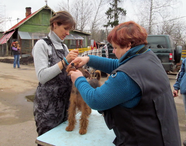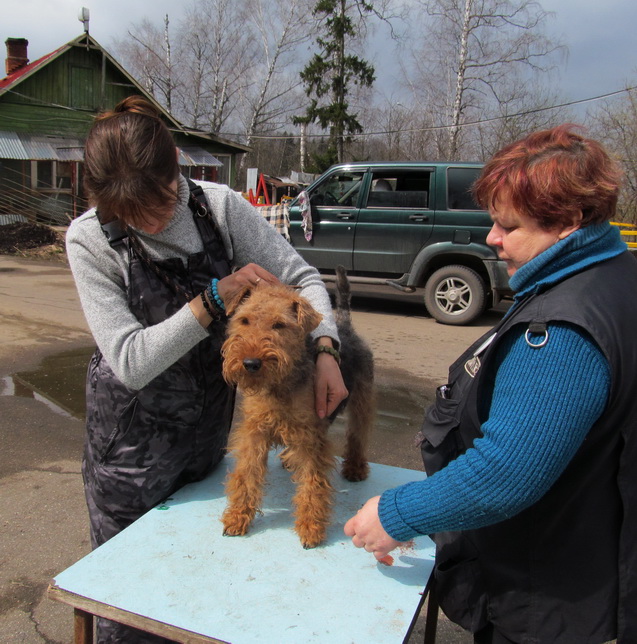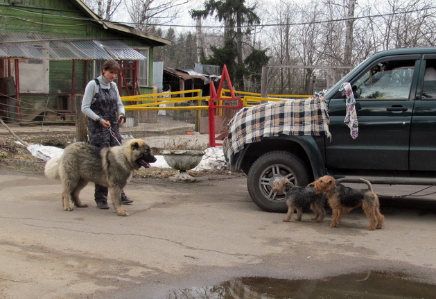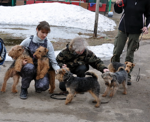 Мы прибыли на выставку вельшей под охраной нашей, пока еще очень юной "няньки"-