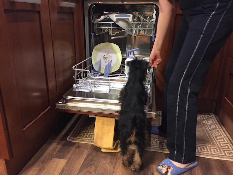 Если я не ошибаюсь, сегодня как раз моя очередь мыть посуду