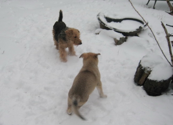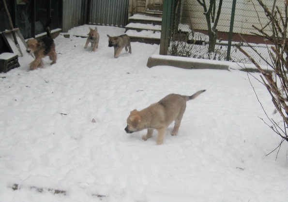 Ну а овчарята живут в уличной вольере (оч.хор. что сейчас на улице не минус 20!) и гуляют со своими родителями, и очень этим довольны. Вторая прививка сделана, очень надеюсь, что на днях их начнут забирать