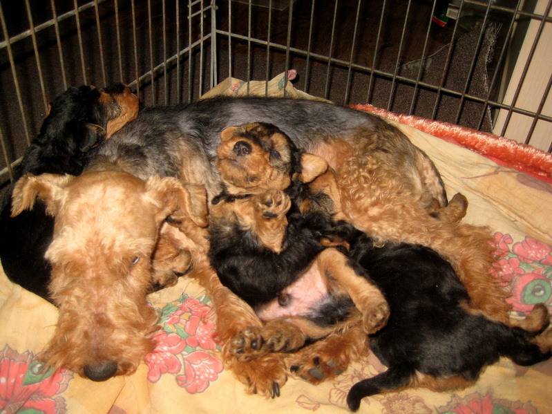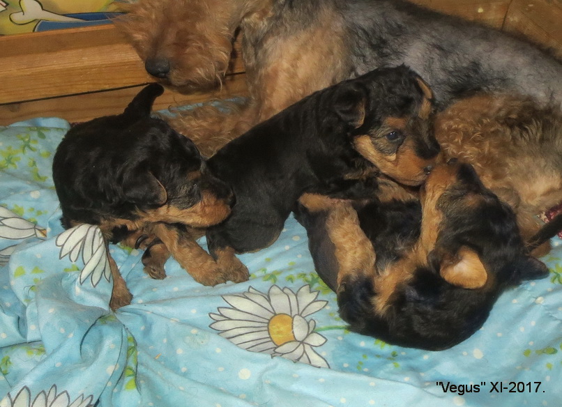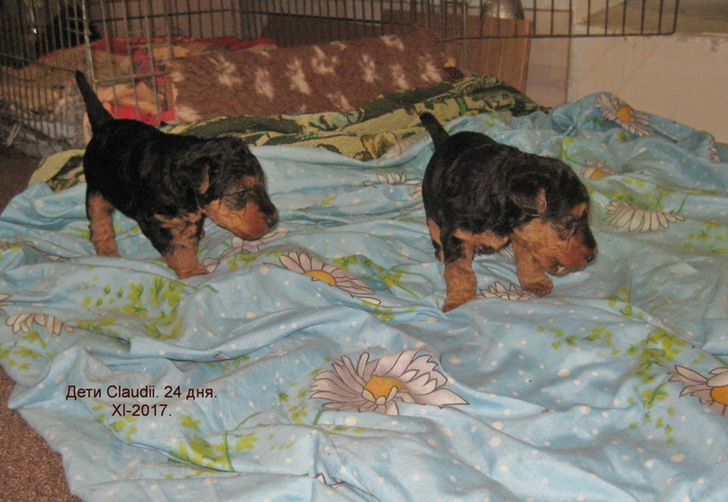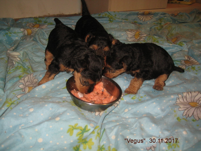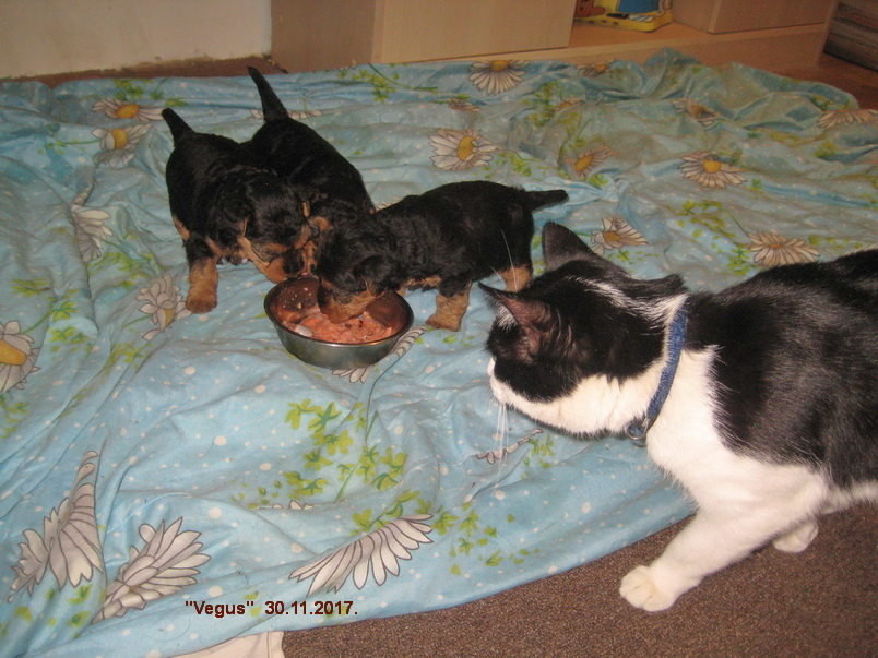 Вельш терьерам щенкам 3 недели, игры с Нянькой-Котом. XI-2017.