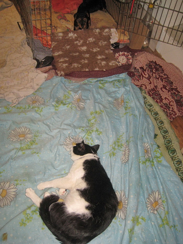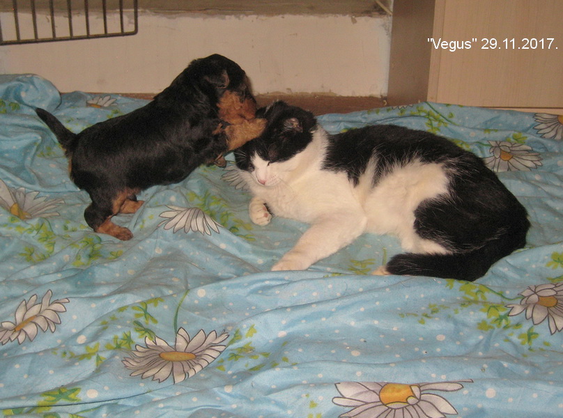 Хорошие щеночки и нянька тоже. А у нас кот жить с собаками не смог.
