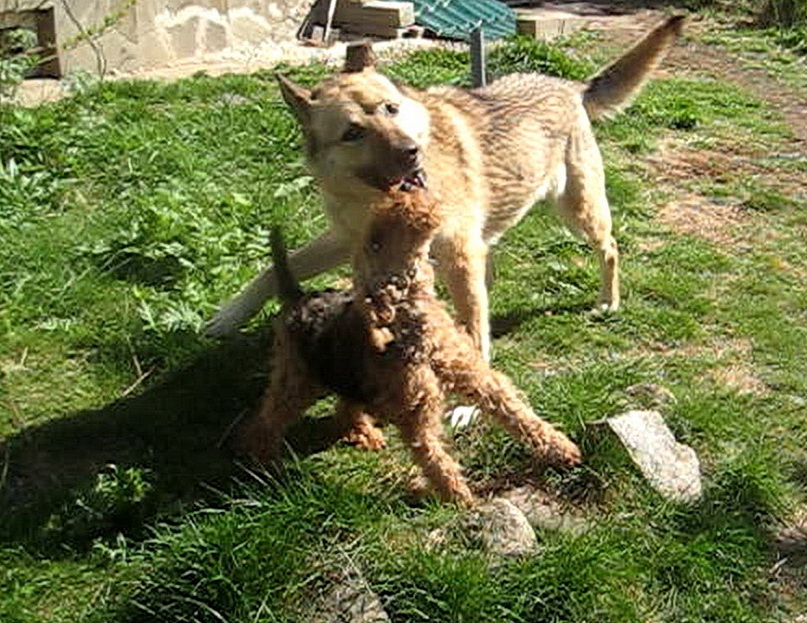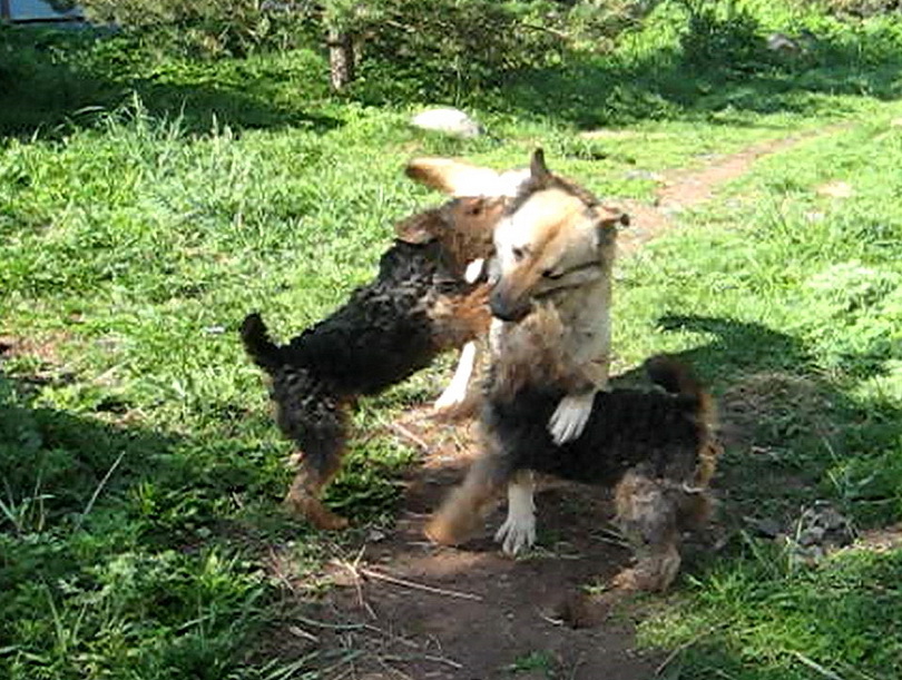 Солнечный понедельник начала июня, собаки играют. Детям Ферзя и Claudiy совсем скоро исполнится 7 мес.