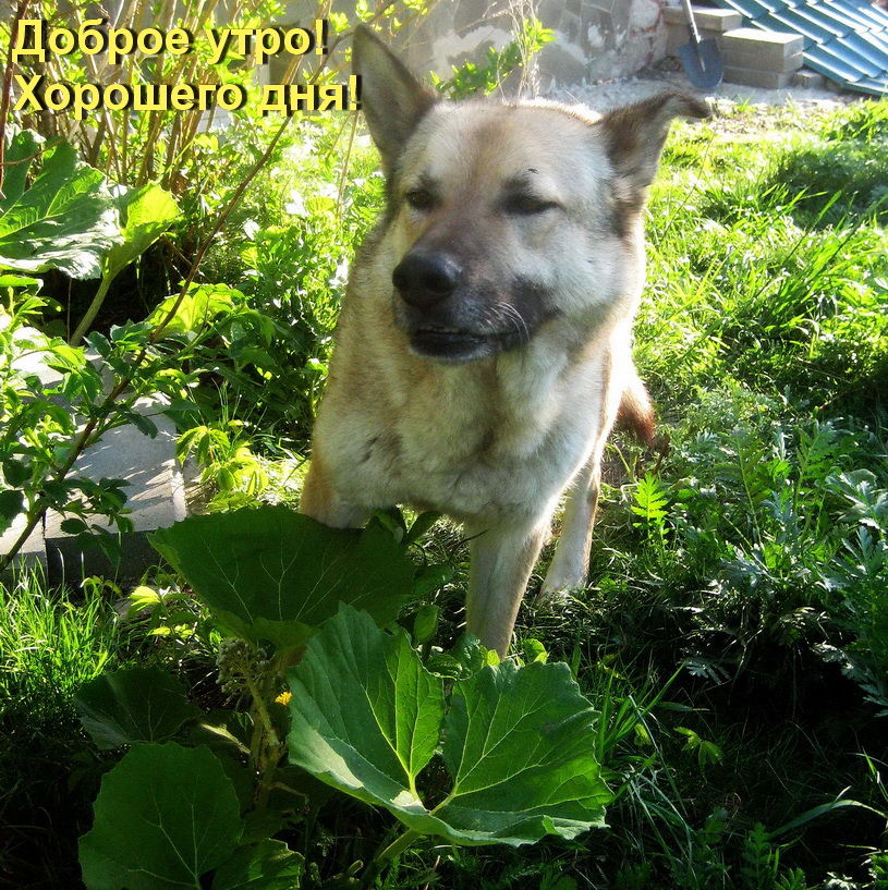 Раннее утро пятницы – солнце, ветер и совсем не жарко. Хорошая погода для собачьих игр и сбора всякой травы на салаты. Завтракаем натуральными деревенскими продуктами. Подмосковные Творог и Молоко «От Фермера» успешно прошли проверку на качество у нашего главного Контролёра качества (Кота).