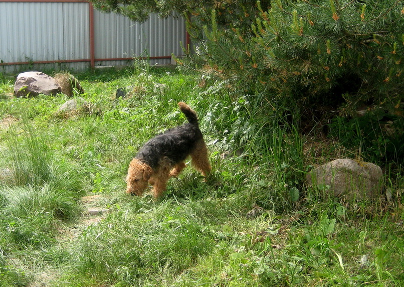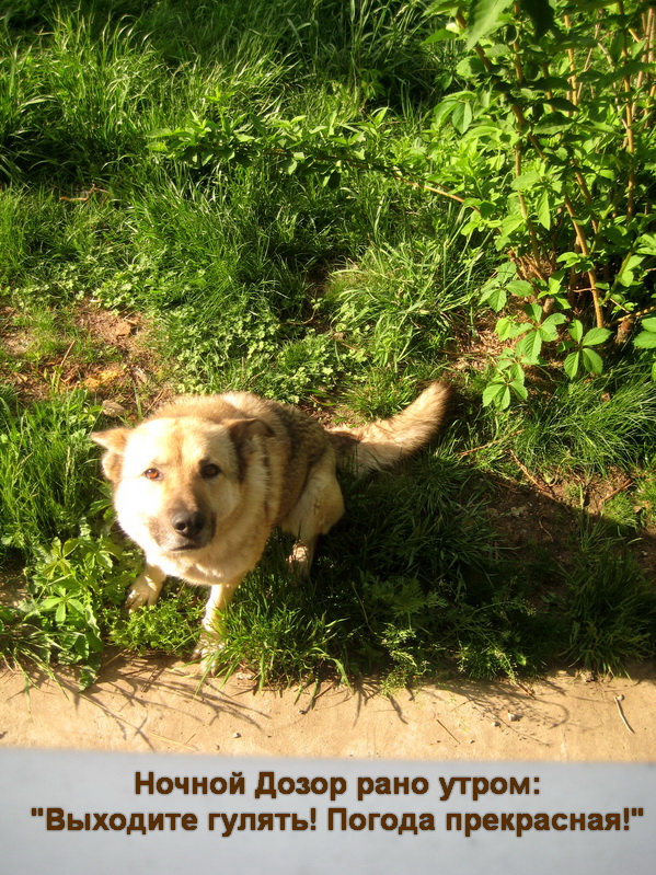 Солнечный тихий понедельник 7 мая после дождливых, с сильной грозой выходных. Собаки резвятся.