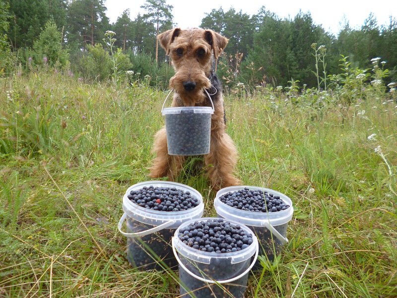 Насобирали черники. Вольф, как и положено вельштерьеру, мой помощник во всех делах.