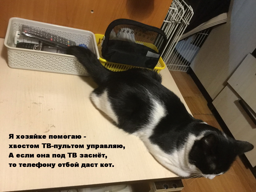 Воскресный вечеру нас - кот контролирует процесс обработки вельша, а потом держит под контролем ТВ-пульт и телефон :-D