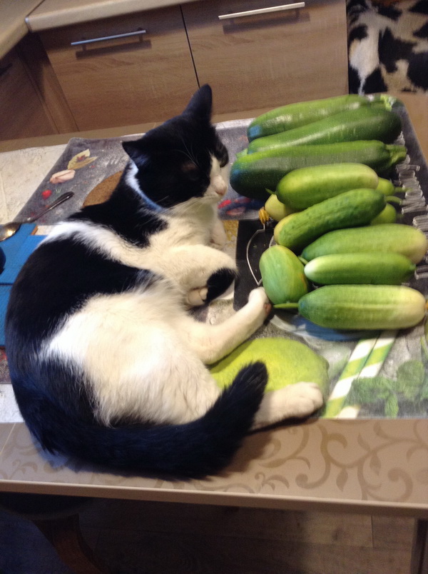 Наш Кот-дегустатор сегодня: 1. очень внимательно обнюхал дары огорода и решил: