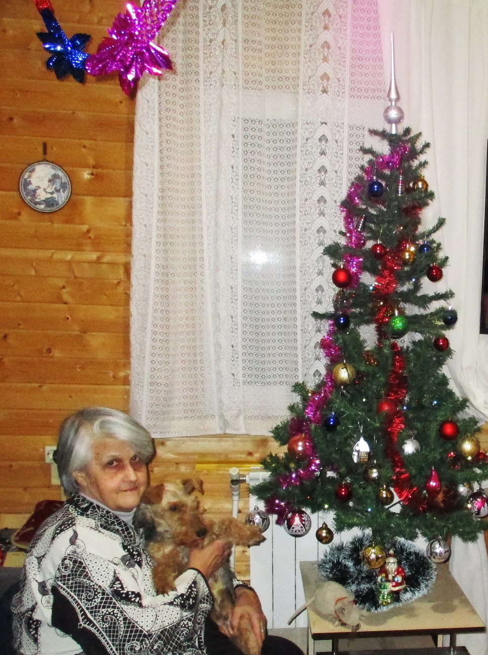 Но радость - жил тут Внук Бабушки, у которой жил Пушок! Ёлка тихо сияла огнями.