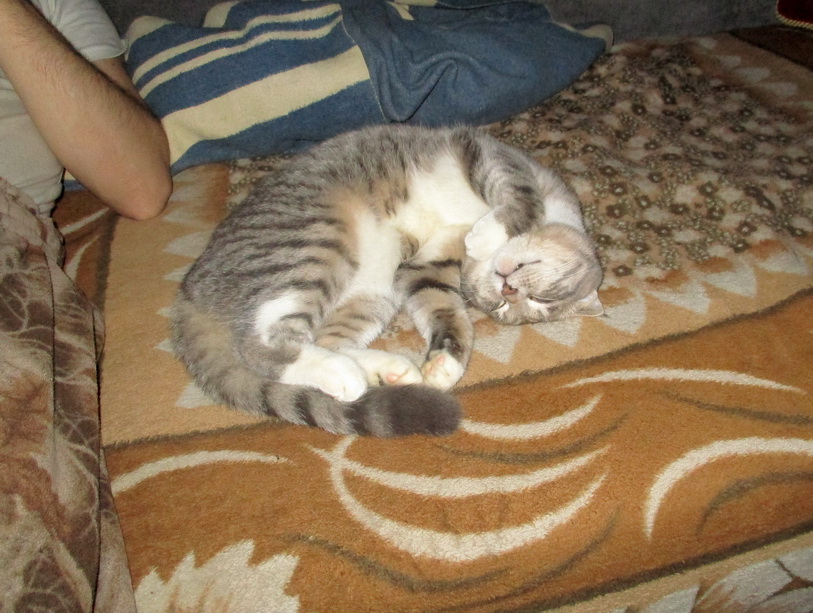 Спят они на разных кроватях, поочереди спят на руках у Хозяев. Когда встречаются, то шипят-мяукают: не подходи ближе!