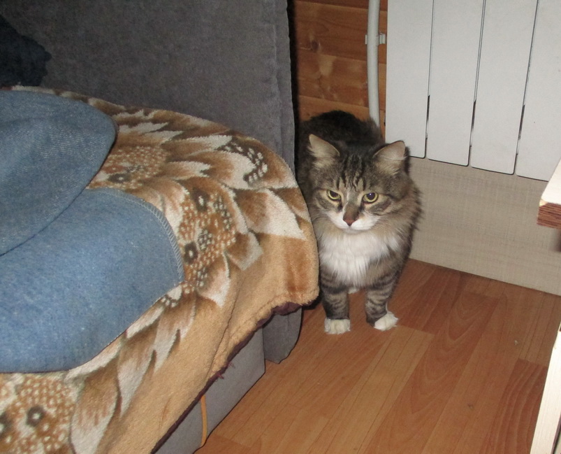 После обследования всех помещений Пушок решил жить за диваном – тепло и спокойно старому коту.