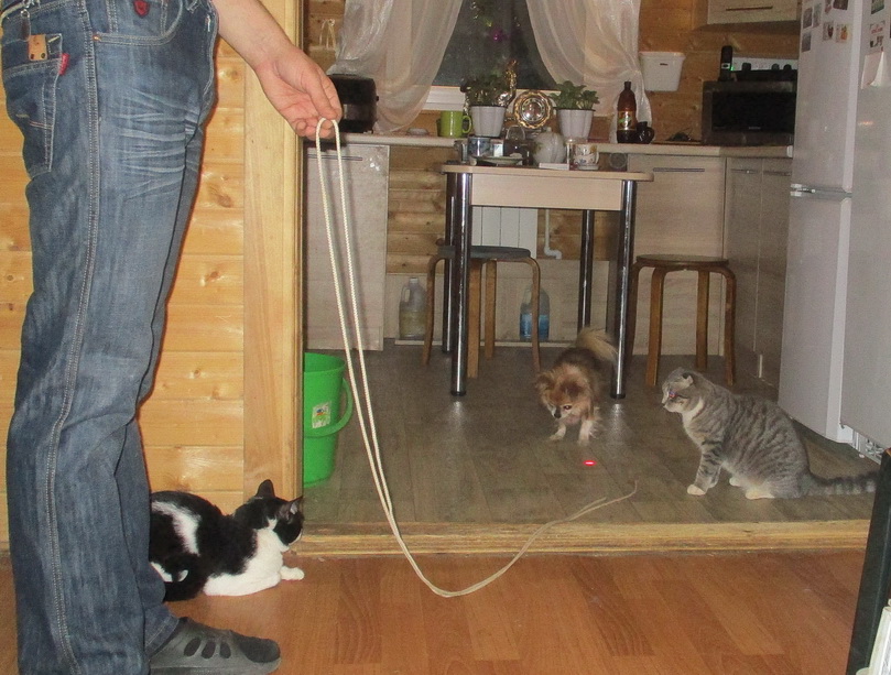 И расходятся. Маленькая собачка иногда играет с ними в мячик, верёвочку или световой зайчик.