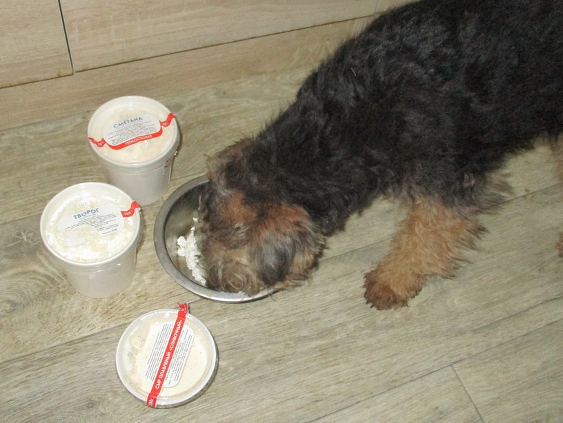 привезли вкусные молочные продукты, заказанные в субботу. Продукцию проверил и одобрил наш главный дегустатор – Кот.