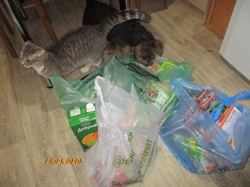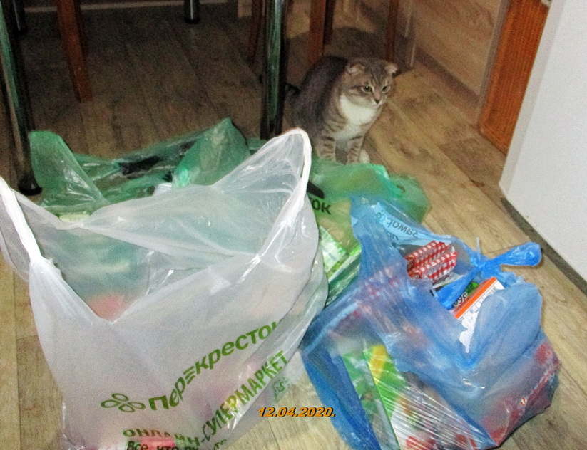 Вечером в воскресенье 12 апреля "Перекрёсток" привёз нам продукты.
