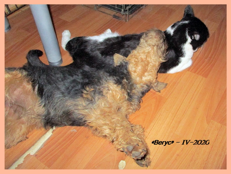 Кот-вожак, котёнок вислоух и вельшик-щенок. -IV-2020.