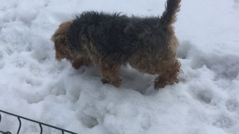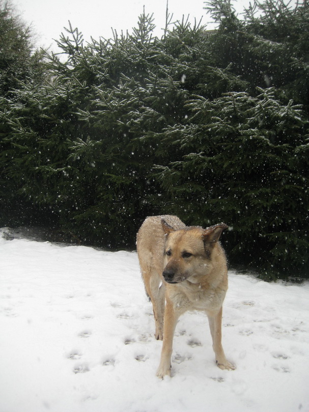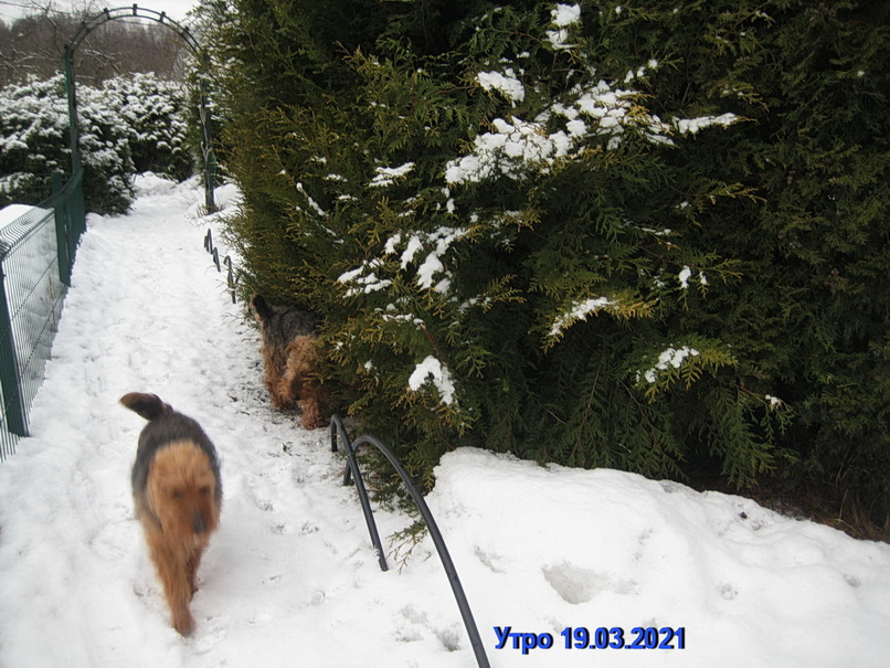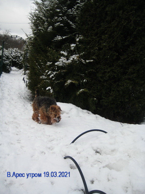 Пенсионер Арес, который встретил тринадцать Вёсен, в мартовских сугробах 2021 года.
