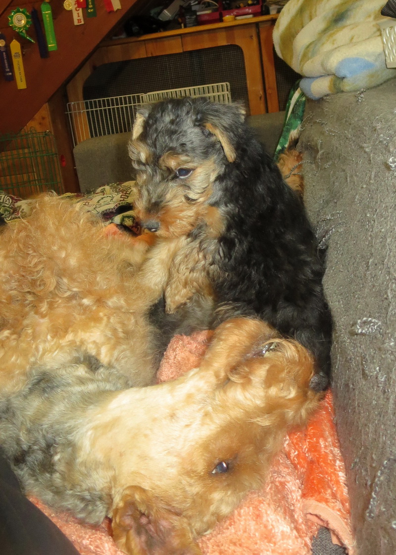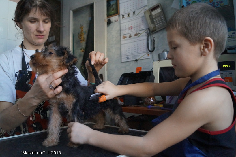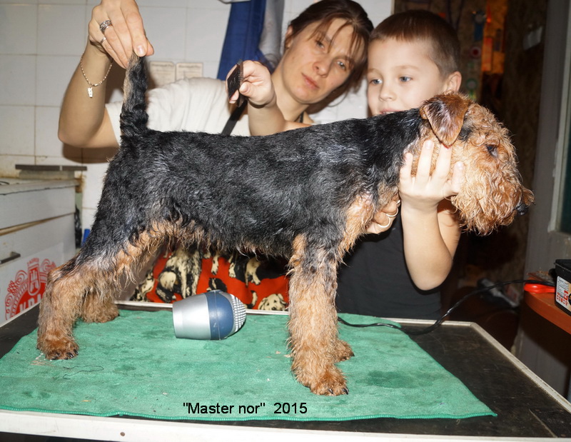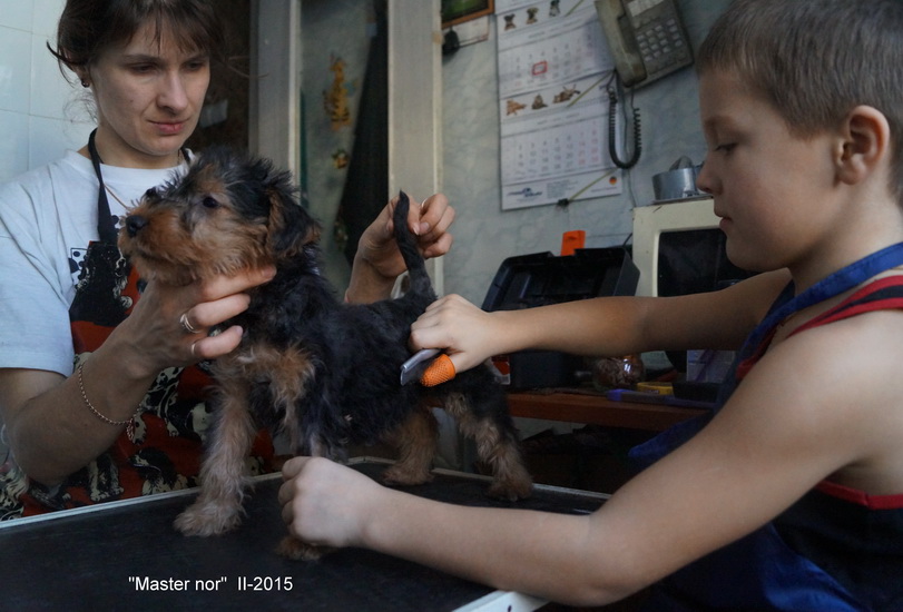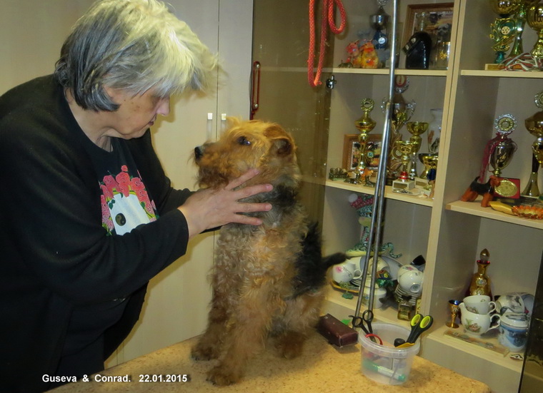 Щенок 4-х мес. "Арик" (сын Urry и внук Conrad)только начал готовиться к выставкам - приезжал на первый тримминг.