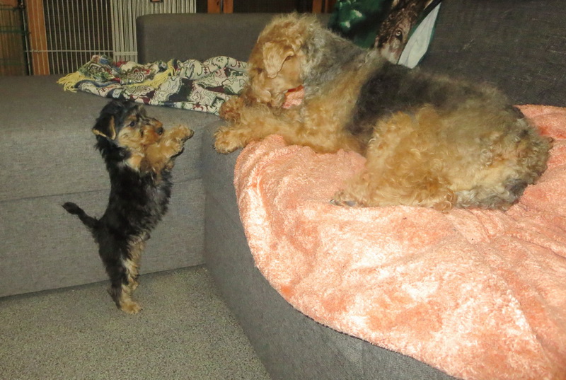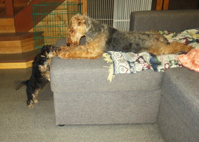 А наш ягд "Рик" 8 февраля открыл список выставочных титулов. Во всех играх участвует щенок той терьер.