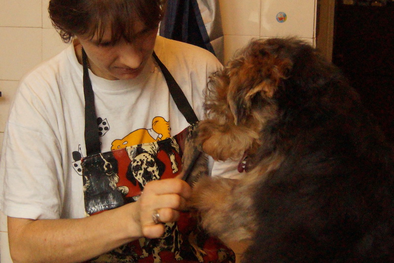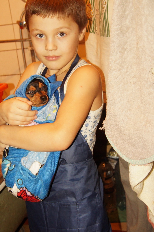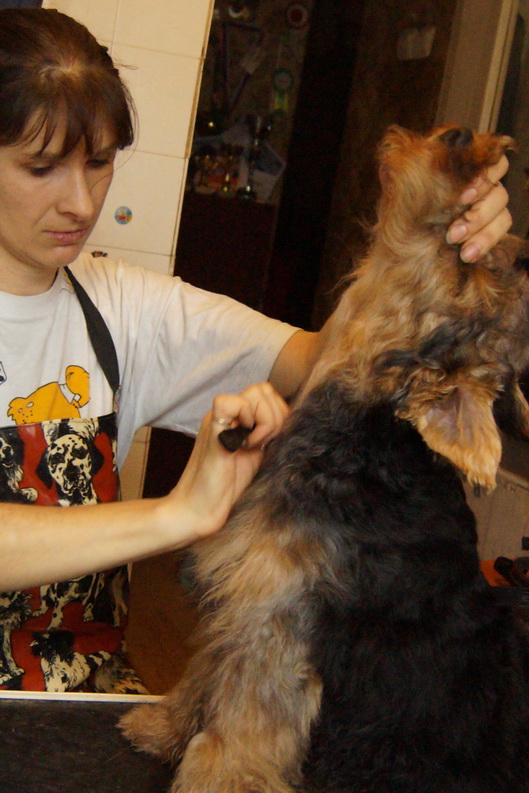 Даня приводит в порядок своего терьерчика