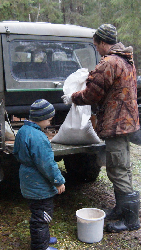 Мои вельши сейчас отдыхают. В школьные каникулы (третья неделя ноября) мы вместе с сыновьями помогали в Охотничьем хозяйстве подкармливать животных.