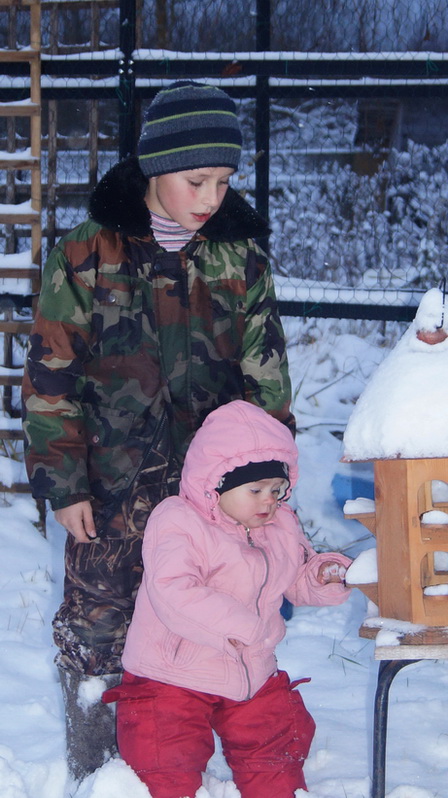 В Охот.хозяйстве подкормили, потом и дома подкормка птицам. Тойчик караулит вяленые трахеи.