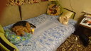 Фото от Н.Бычковой - Зевс на даче в конце лета и Лето кончилось, Зевс с котом дома на диване.