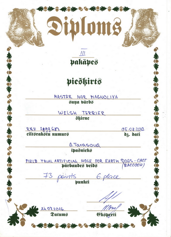 После 45 специальной выставки такс и терьеров в Латвии (23.07.2016.)и состязаний по норному зверю (24.07.2016).