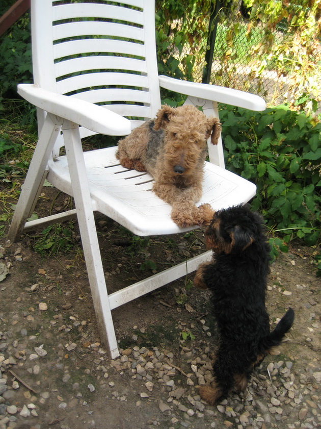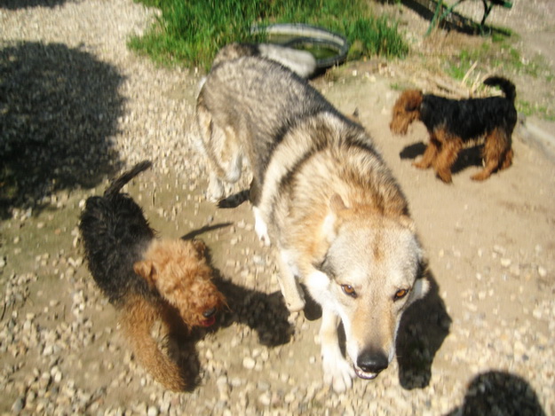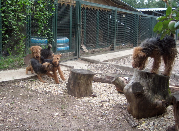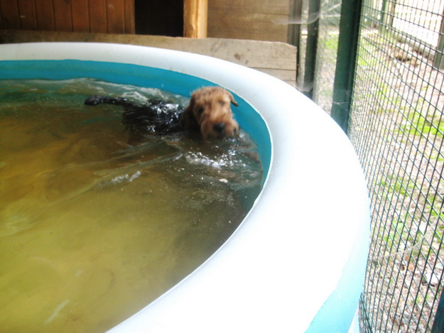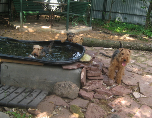Тепло, терьеры днём накупались (в бассейне), а потом бегали-играли