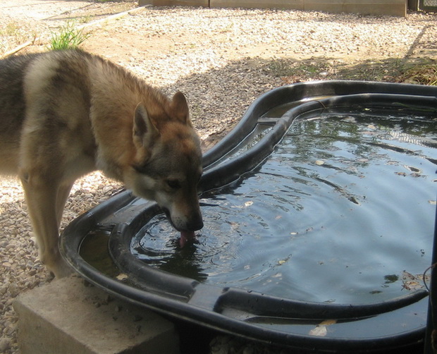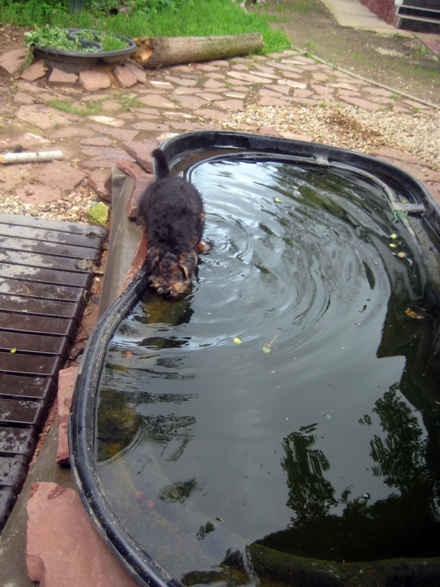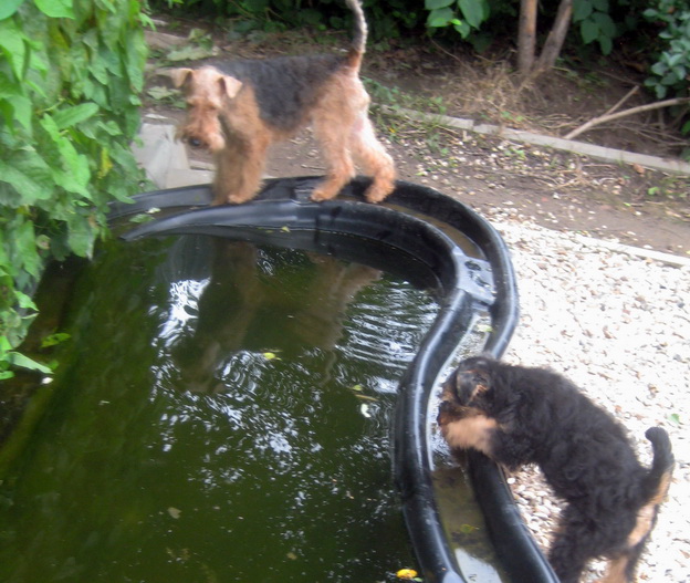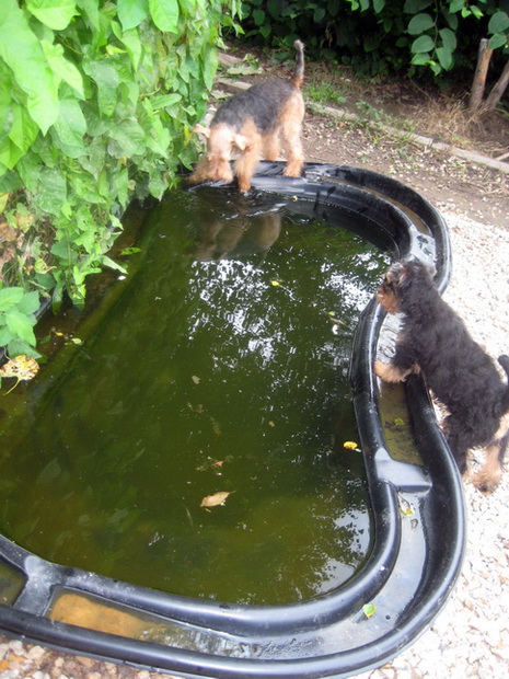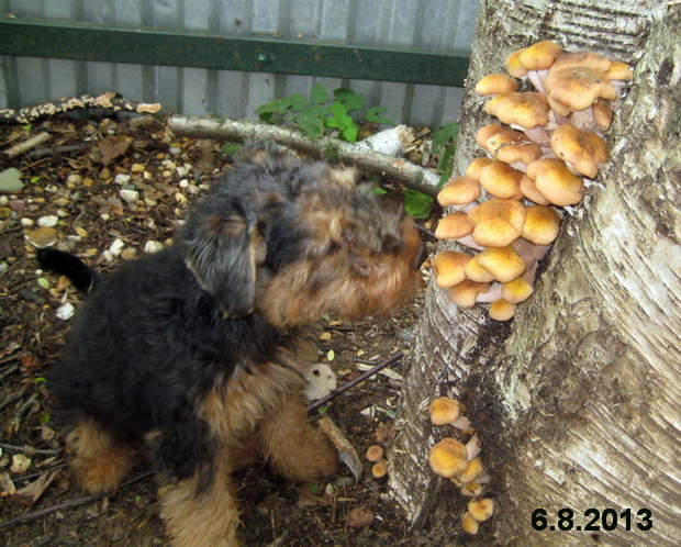 На участке появились грибы. Собаки пробуют водичку, готовятся к купанию ;)
