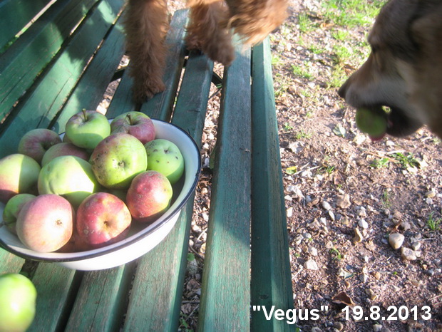 При сборе яблок то, что для собак, я кладу на лавочку, а то, что людям – в миску. Когда собаки суются в миску – ругаю их, запрещаю.