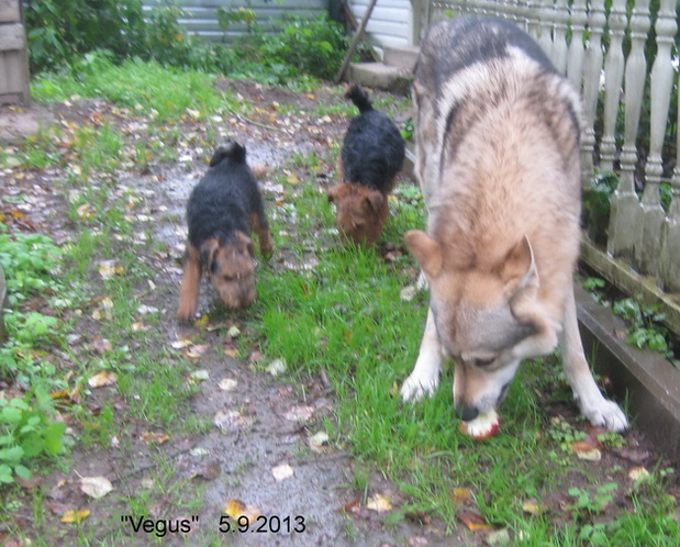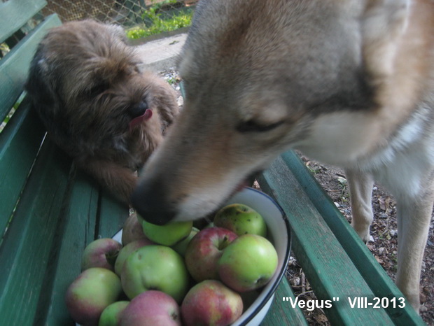 Влчаку хорошо. Он большой и сильный. Что же, теперь все яблоки ему? С вельшиками надо поделиться добычей!Тем более, что они - его лучшие друзья.