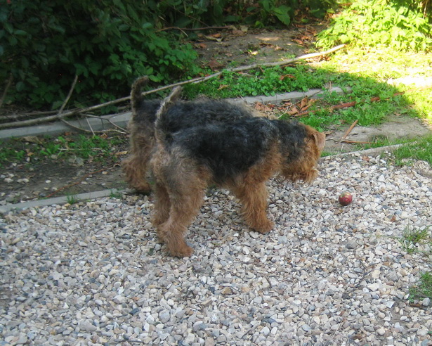 Бордер терьер Юлька (Вегус Юника) изучила яблоки, но брать их всё-таки не решилась, хотя дома яблоки, что я ей даю, ест с удовольствием.