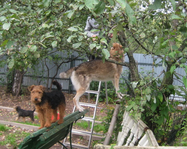 Было интересно было наблюдать как по-разному собаки этих трех пород «помогали» мне собирать яблоки.