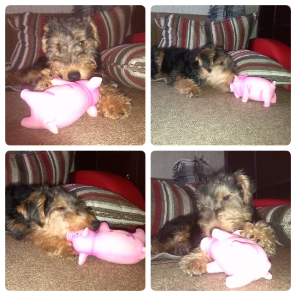 По традиции каждый новый месяц мы дарим Кими новую игрушку )) хрюкающую хрюшку, именно она хрюкает, а не пищит,что оказалось очень по душе ))