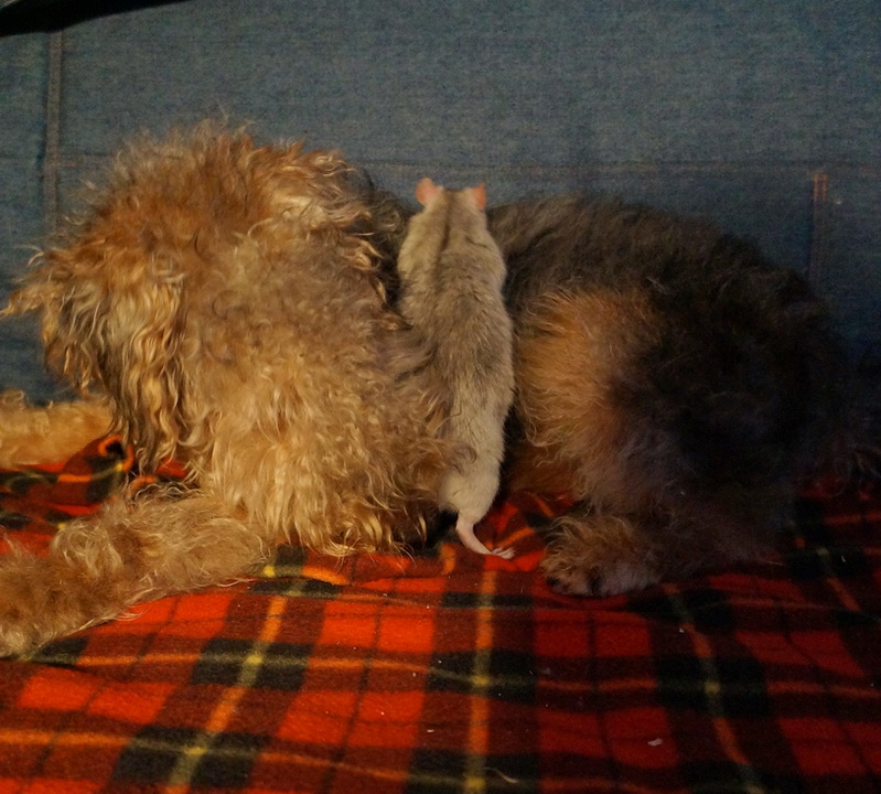 Ойой, как давно мы не были на форуме, сколько новых замечательных фотографий! Трогательная дружба вельшика Тима с крысой! Мягкая пушистость Каролины! А место отдыха Карата ну просто абсолютно совпадает с пристрастиями Корсы, сразу видно - брат и сестра