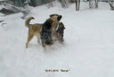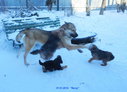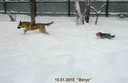 Продолжаем вспоминать весёлые прогулки со щенком (Ирбисом). Обычное снежное утро в питомнике. 5 января 2015 г.
