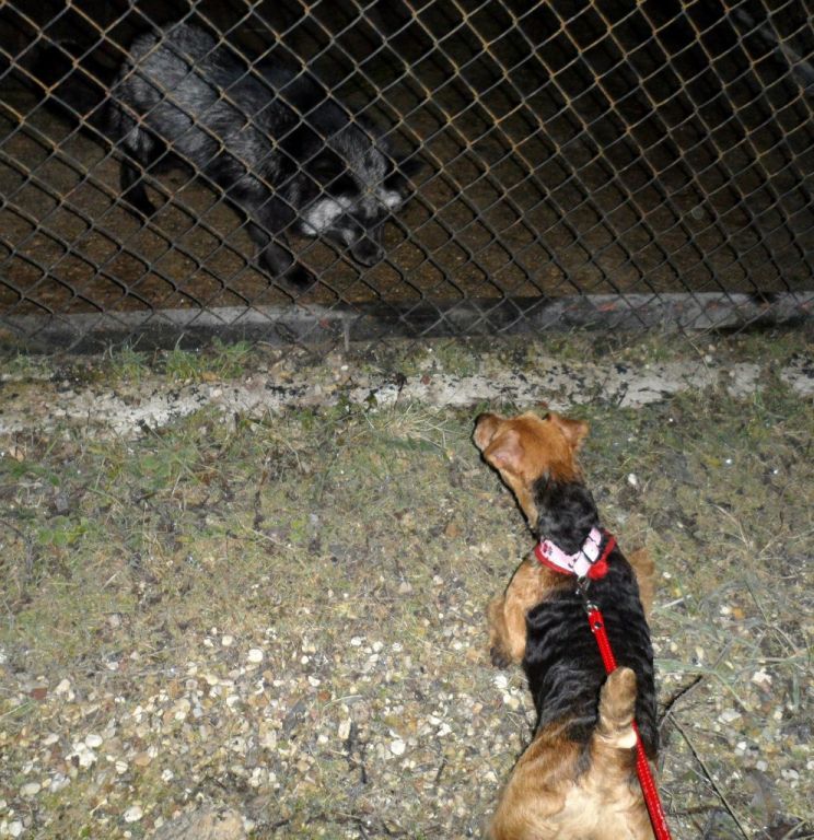 И Груня видя волка , вела себя предельно осторожно - к решётке близко не подходила в отличии от вольера с чернобуркой .