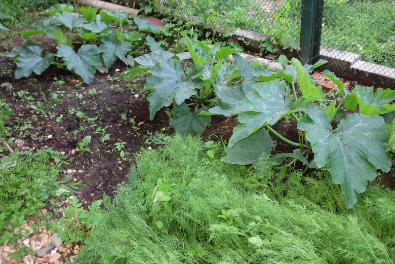 Ого, какие кабачки у вас уже выросли! У нас на даче кабачки принципиально не хотят расти. А вот красная помидорка тоже уже висит. И на навозной куче тыквы (в виде ботвы) огромные!