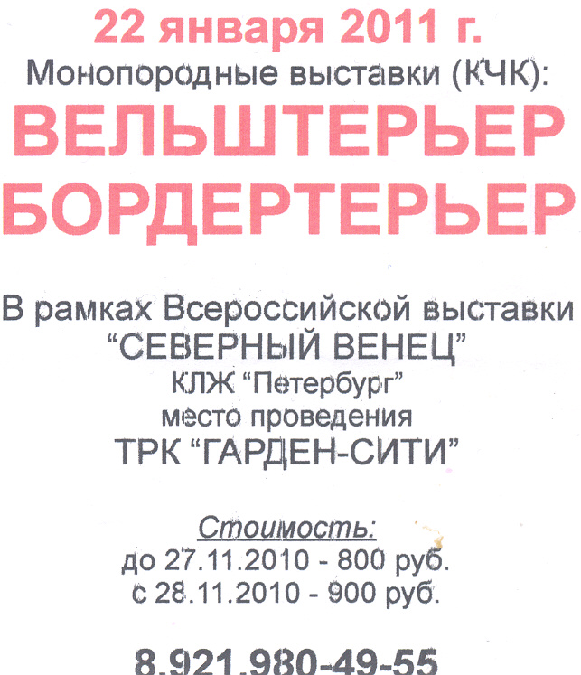 Выставка на январь 2011 в С.Пб заявлена, бумаги в НКП и в РКФ есть.