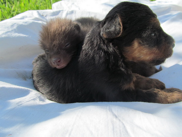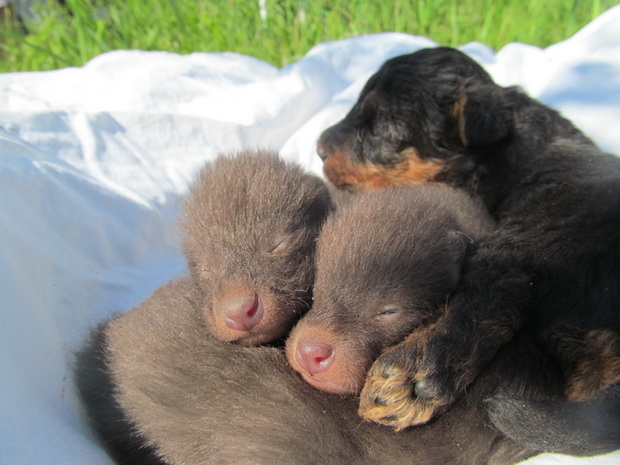 2-3 июня. Солнечные ванны принимают малыши: и тойчик 10 лет, и щенки - вельшик с енотовидными собачатами