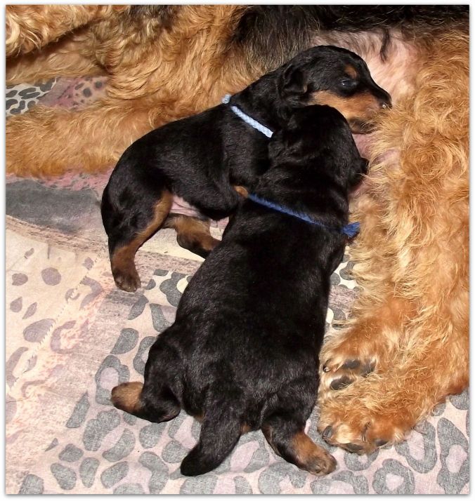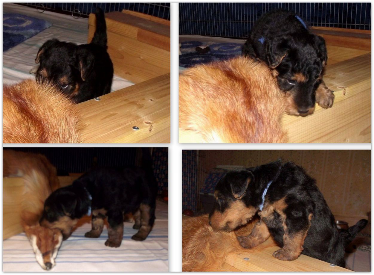 Кроме "миши" у вельшиков есть ещё одна нянька, старшая сестра Эфа. Опыт нянчиться и воспитывать малышей у неё есть, и мама Груня деток ей спокойно доверяет. Эфочка очень довольна, что у неё есть возможность пообщаться с малышами, ходит задрав нос от своей значимости ;) . Смешная... :-D
