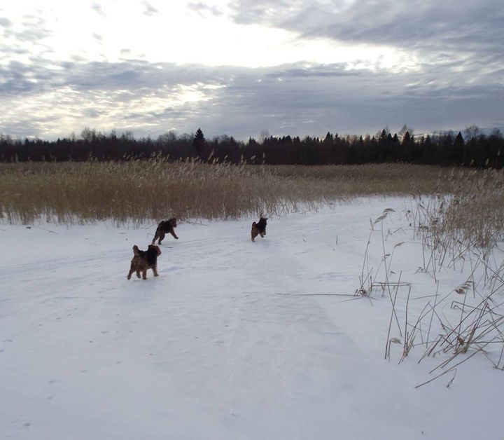 Нильс со своим хозяином эти дни проводит на охот.базе. Мы с девочками дома. После тримминга они совсем без шубок, а в пригороде ещё холодновато…